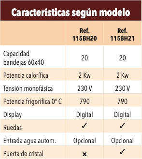 Cámara bajo horno de fermentación controlada con guías para 20 bandejas de 60x40.